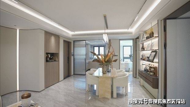 全墙纸交标结合整幅岩板客厅景墙,以定制设计感提升空间立体感。保利西郊和煦售楼处电话:400-118-3159