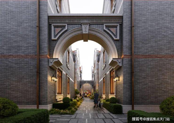 拱形门坊及雕花复刻湖州会馆、菱形山花元素还原老建筑印记、巷道风貌铺装叠加红砖清水墙赓续衡复风貌,演绎百年摩登风尚。