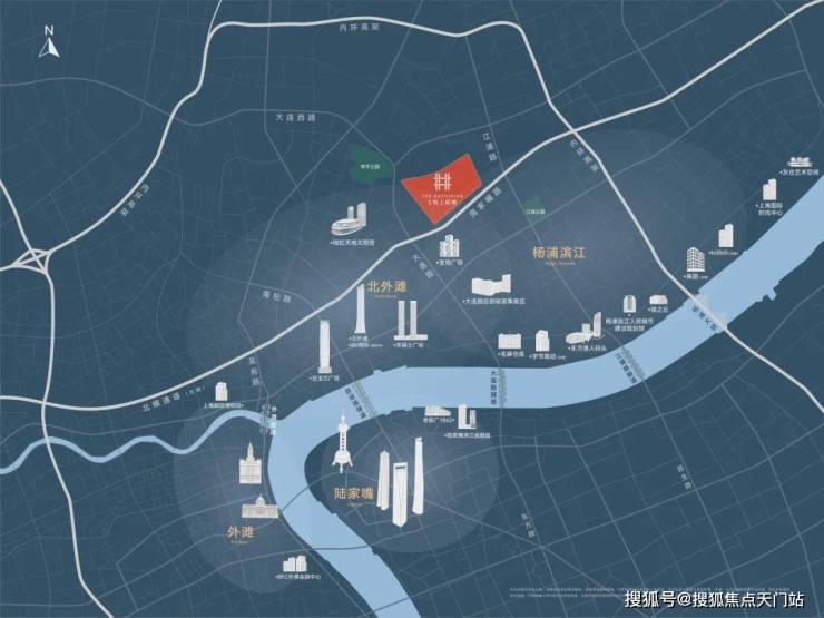商业地标:北外滩来福士、瑞虹天地、控江旭辉mall、紫荆广场、白玉兰广场、北外滩480米地标(规划)