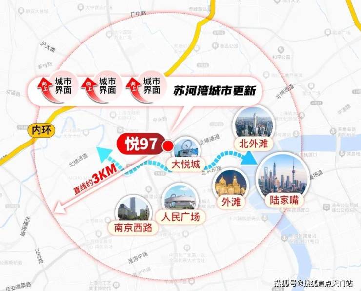 回过来看 悦97,它是真正的苏河湾核心位置,真正揽尽了苏河湾的精华!
