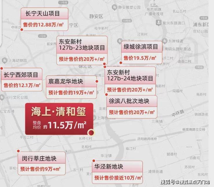 海上清和玺由两幅地块组成,(徐汇长桥xh315-10地块、xh313-16地块),项目四至范围:东至龙川路,南至罗香路,,西至长桥路,北至地块边界,临近中环高架!
