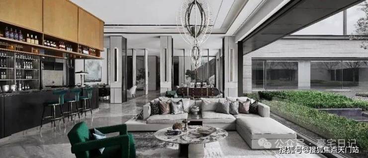 与连廊衔接的地下会所同为SCDA作品,延续了整体布局秩序与平衡,通过中庭花园和超白玻璃的大量使用,将自然光引入地下,使整个会所显得更加开阔和明亮,当然,这席 高定艺术会所仅向小区业主开放~
