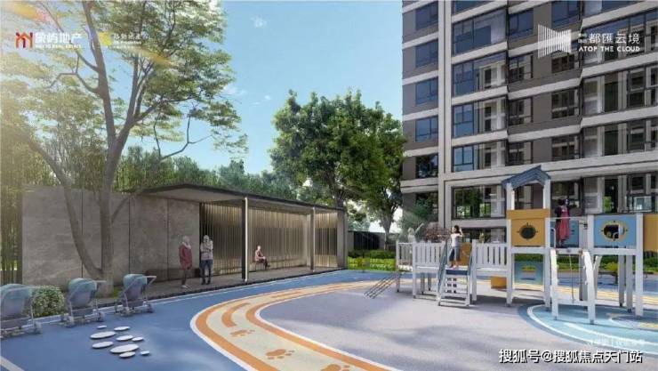 约300㎡儿童户外活动空间,周边配置成人健身区、看护区等,满足玩耍与陪伴需求。