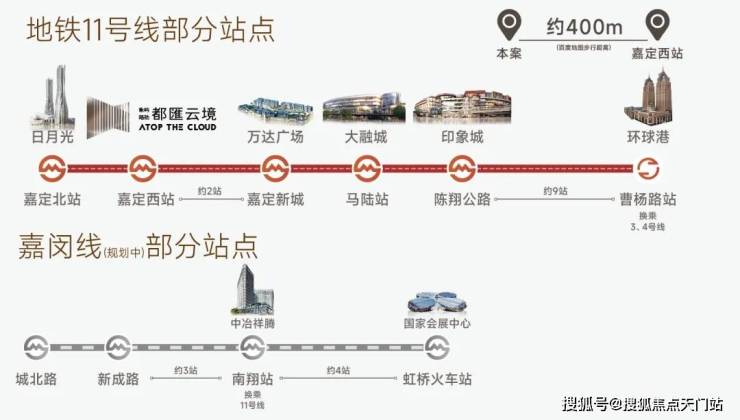 项目距离嘉定西站步行仅约400米。在南翔站可换乘嘉闵线(在建中),双轨交环绕,从容畅达上海18+商圈!