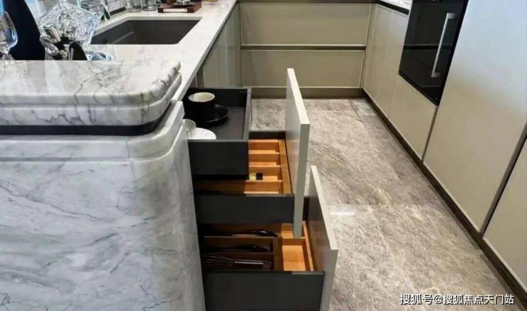 为使厨房成为「真正幸福之地」,璞元在各个细微之处倾注关怀,从地柜拉篮系统,到上柜系统,再到抽屉分格系统,浅抽与深抽搭配,让整个厨房空间,既百变,又充满秩序!