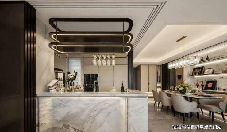 厨房与餐厅打造半开放式格局,隐形推拉门既可以隔绝烟火,平时收入墙内让空间一体、开阔大气!