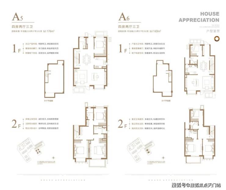 下叠户型,共有三个主力户型,建面约155、163、176㎡下叠。