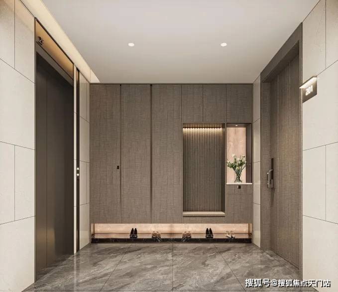 梯门一开,家的温暖迎面而来,家的玄关尺度,延伸至电梯厅。