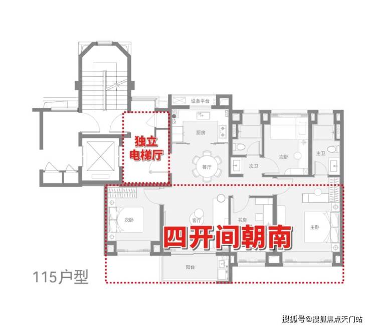 建面约115㎡4房做到同面积段罕见的 四开间朝南+4房设计,同时能以更经济的总价一步到位4房。