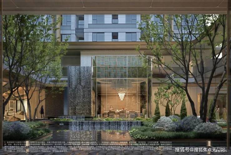 品质归家轴:贯通主入口+对景空间+架空层+社交花园港湾,形成一体化泛会所客厅空间;