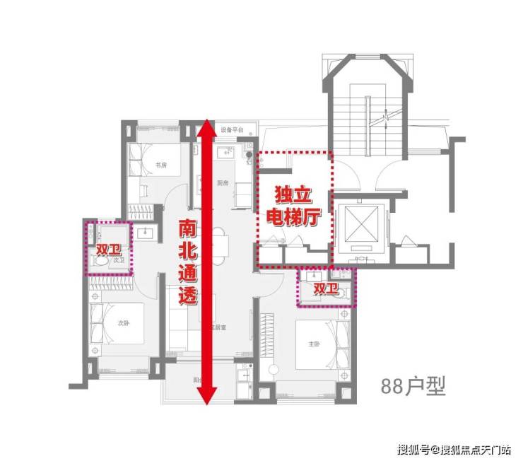 具体而言,建面约88㎡比同级户型 多了“1卫”,免去家庭抢厕所的烦恼,大大提升居住体验,未来在二手房市场也更具竞争力。