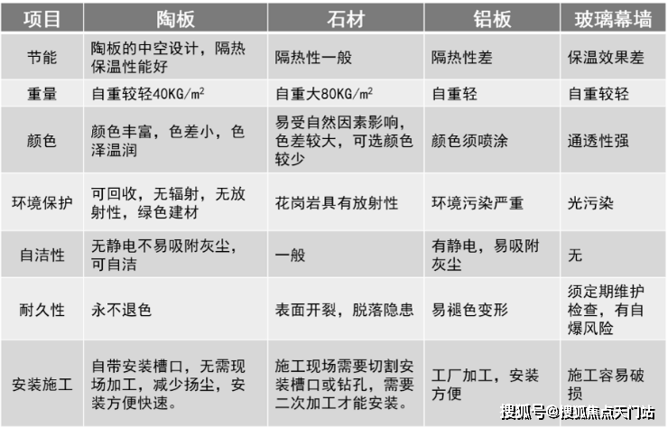 相比于传统石材、铝板等,陶板具有天然优势: