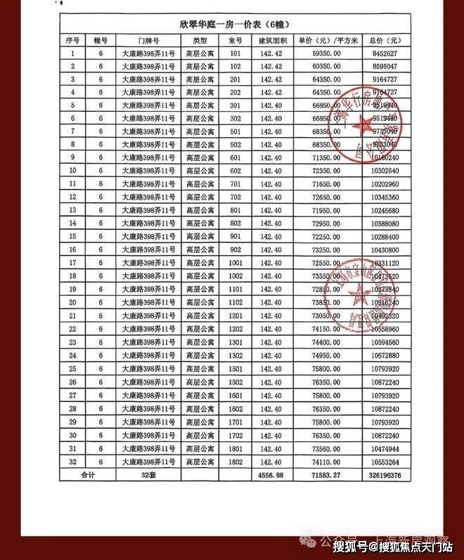 一房一价表如下: