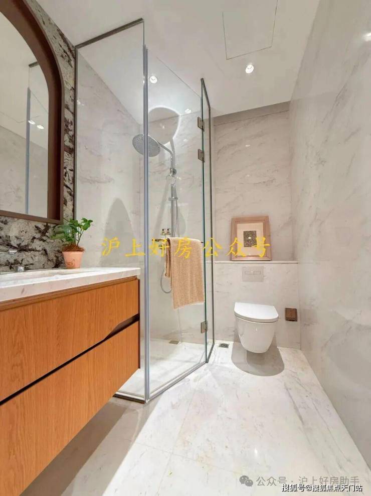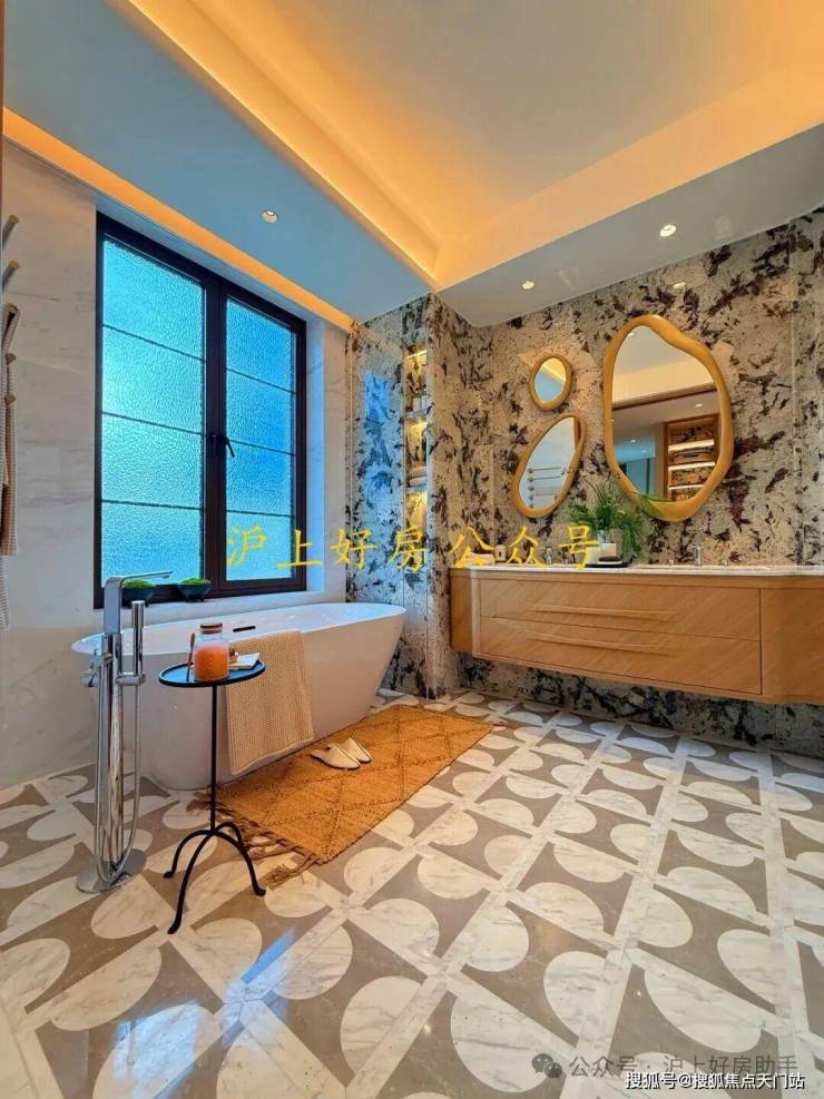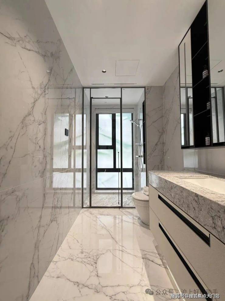 3.八种不同材质的奢石运用,卫生间地面全铺石材