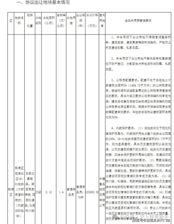 而就在9月4日下午,杨浦区N090601单元I4-01地块(大桥街道97街坊)在激烈竞拍中成功出让。经过75轮竞价,最终由中铁置业和江苏润皋联合体以27.362亿元成功竞得,成交楼面地价92225元/平方米,溢价率28.1%,是七批次集中供地成交溢价率最高的地块,同时成交价格也刷新了板块记录。
