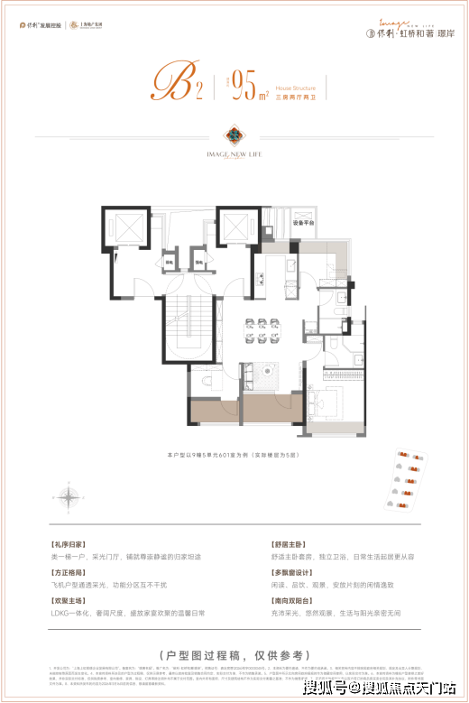 同样配齐 一梯一户、全明梯厅、双阳台、约270°转角飘窗 ,还有两个碾压同价位的优势。