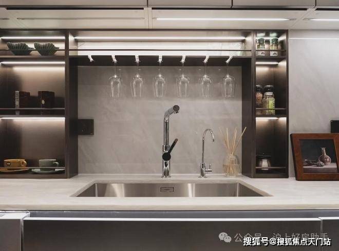2、装标在线:开放式厨房配置嘉格纳三件套、铂浪高水槽及龙头也是标配,可谓是配置拉满!