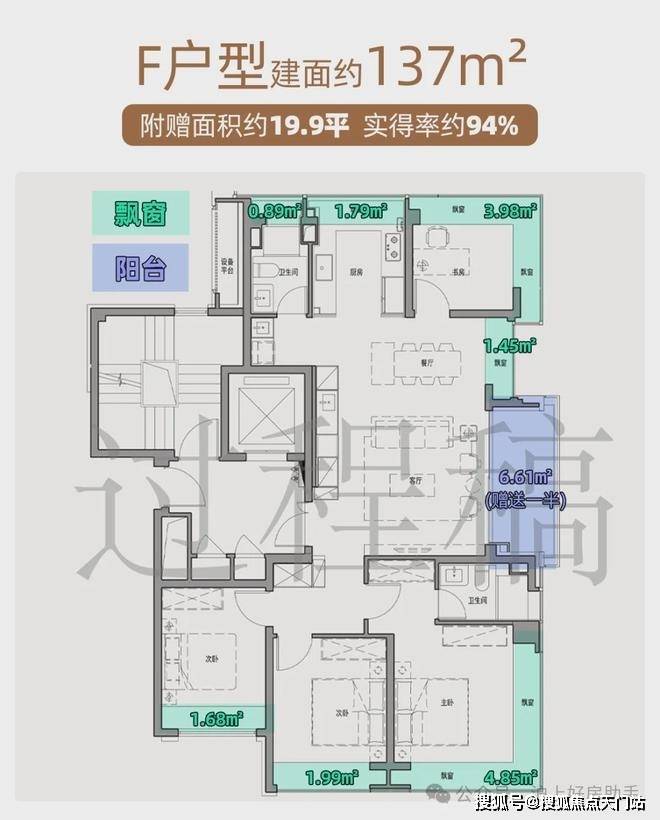 2、附赠空间拉满:赠送面积约17㎡!地毯率约82%!主卧套房270°飘窗+步入式衣帽间+独立卫浴设计拥有4个飘窗,尊崇感与实用性拉满!室内满飘窗结构 ,有效延伸空间,让各空间的居者都拥有独立的兴趣天地,男女主人在270°飘窗瞰景聊天、孩子在自己的私密空间拼乐高、老人在飘窗习字品茶,丰富生活场景皆在眼前~