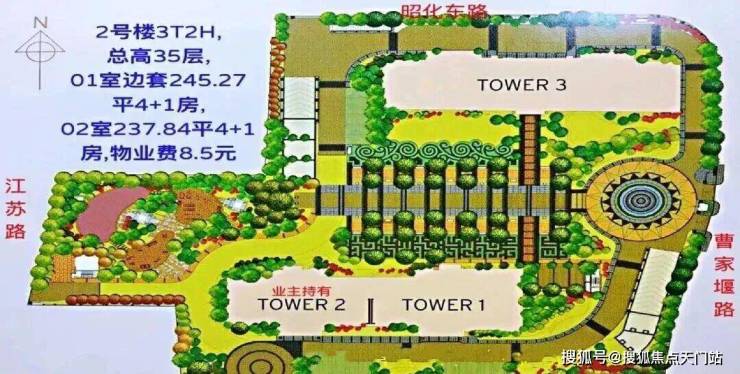 小区容积率5.0,绿化率高达53%,采用人车分流设计和法式园林景。