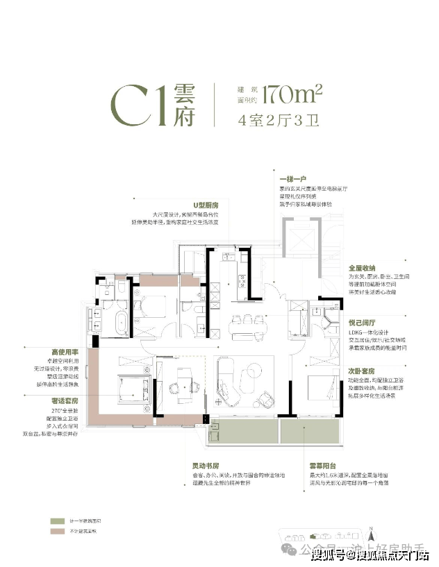 大平层的附赠满打满算最多就有20个㎡。而反观翡雲悦府·悦墅建面约210-215㎡的别墅产品,附赠面积最高约200㎡以上。
