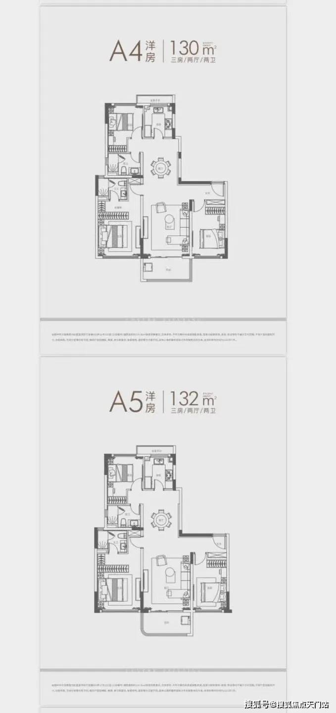 ①、建面约120㎡3房: