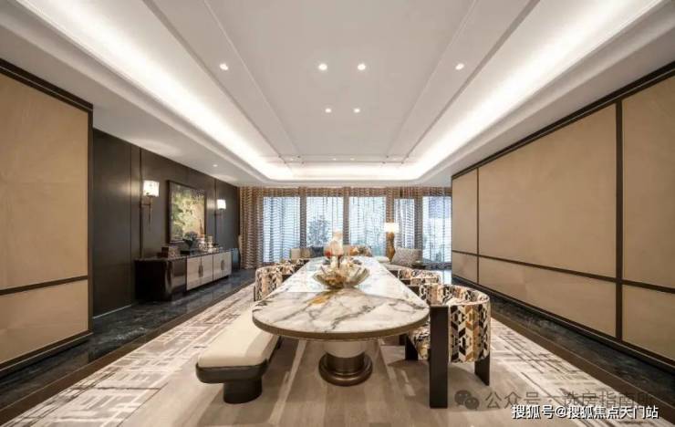 其一, 270°转角弧形飘窗 的创新,超绝的窗墙比造就空中全景舱。弧面玻璃都是三玻两腔,造价高昂。其二,在建筑层间用 弯弧铝板 来勾勒线条,工艺复杂、成本昂贵,楼体 铝板也是弧面设计, 并且整体大面运用滚涂工艺,色彩鲜艳、防腐性能好、耐气候性也更好,豪宅气质更加历久弥新!
