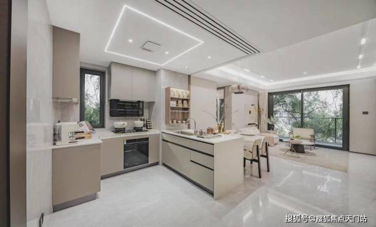此外,99㎡的户型还设计有无界中厅,采用LDKB一体化设计,是典型的“非传统去客厅化”设计,开放式的厨房,这种设计,不仅拉大了视觉尺度,更让你在做羹汤时,能与客厅里的家人随时互动。
