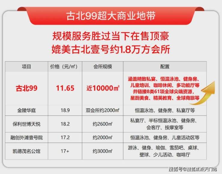 ✔顶豪圈层体验。超大商业地带,搭配缦合物业服务,规模与服务直追古北壹号1.8万方会所,甚至超越当下在售的顶豪项目,在这里,不仅是安家,更是身份与品位的象征。
