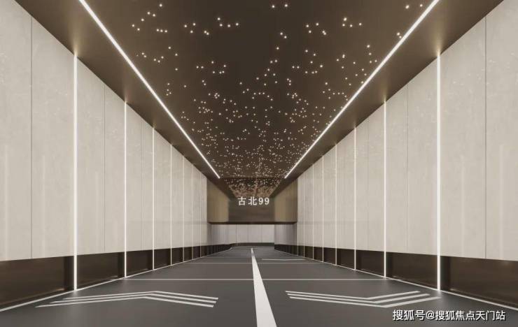同级都在卷公区,古北99公区也十分硬核, 宽境社区大门、四季景观,酒店式入户大堂/地库大堂、艺术星空顶车库入口...该有的仪式感一个都不落。