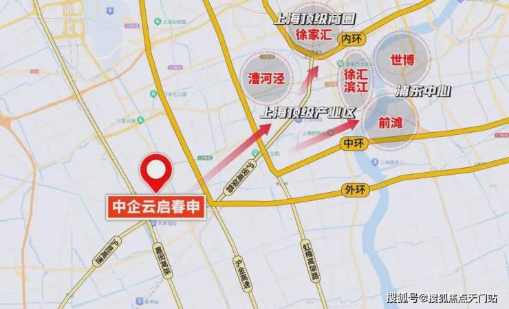 往北是七宝虹桥、往西是漕河泾、徐家汇、徐汇滨江、前滩世博浦东主中心,往南是颛桥、紫竹、往西是G60科创走廊。