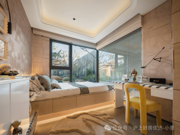 并且,卧室的尺度感极佳。即使是最小的北房间也能放下一张床+一个书桌,加上约270°的采光面,这个户型可以满足一个家庭各个阶段的需求,一步到位的好产品。