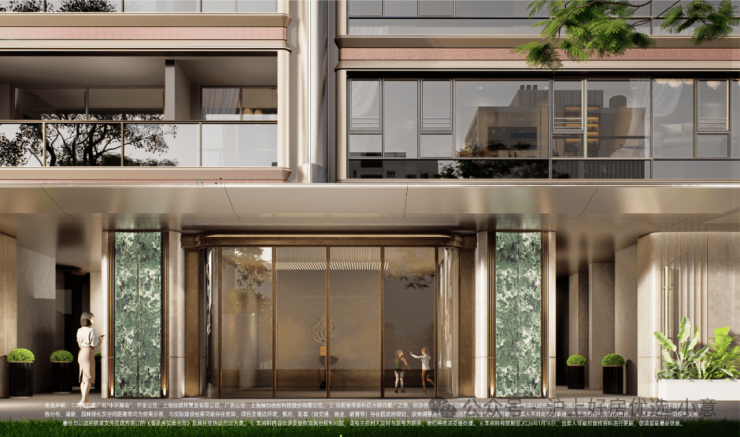 单元门厅搭配两侧大面积的 高档奢石,将酒店的归家礼序引入日常生活。