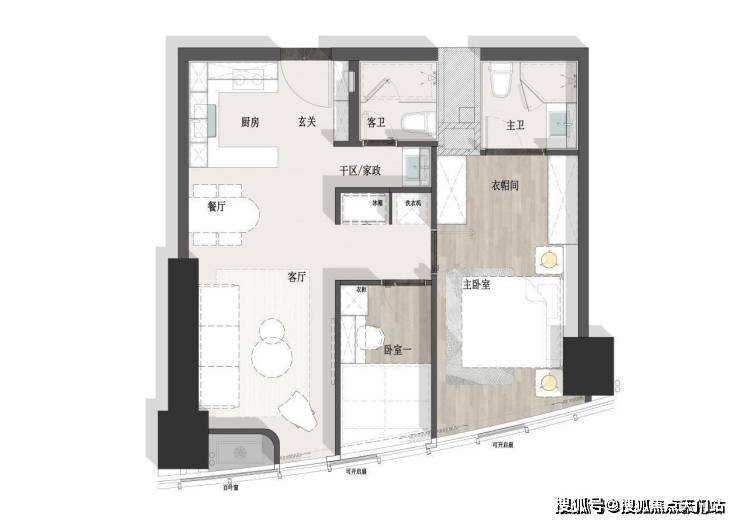 面宽进深比近1:1,三开间朝南,超大入户玄关空间拓展;
