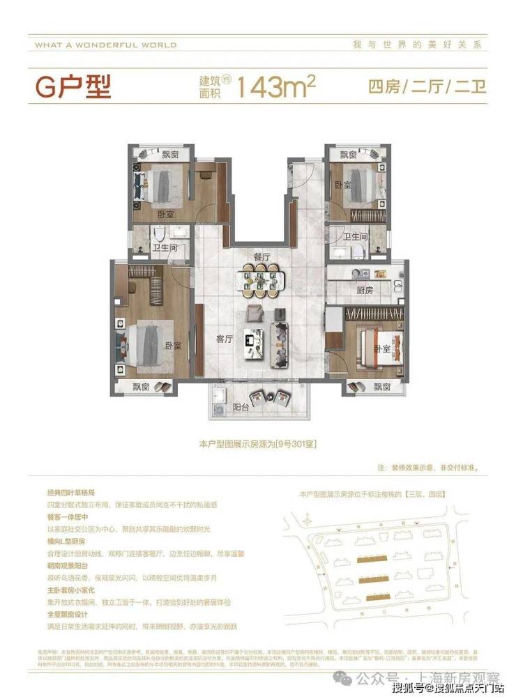 地坐落于奉贤区奉贤新城,四至范围:东至贤浦路、南至南行港路、西至金碧路、北至聚萃路。根据土地转让合同要求显示,项目住宅装修比例不低于50%,装修标准2000元/m²(集采价)。