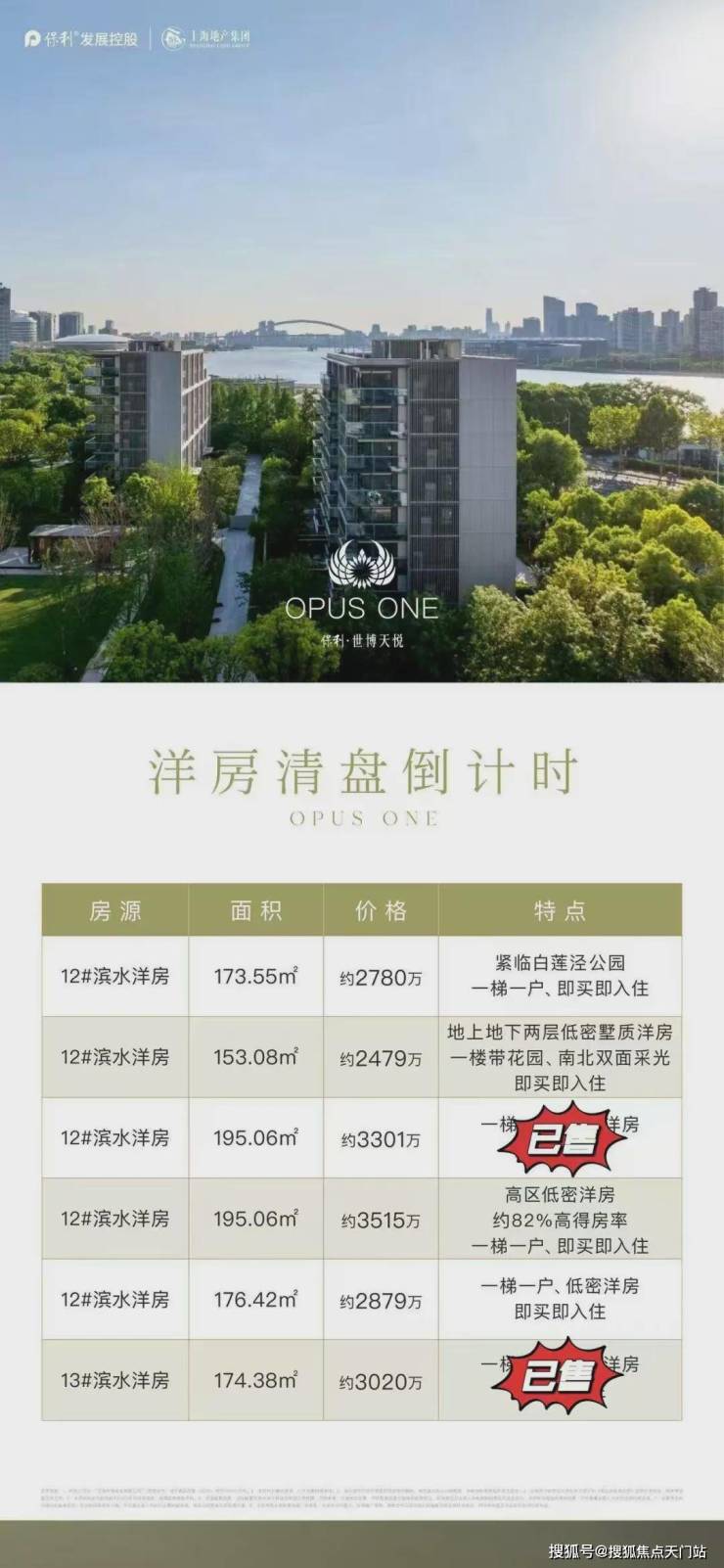 如果说翠湖代言的是传统市中心,那么,黄浦江一线滨江的代表当属【保利世博天悦】!