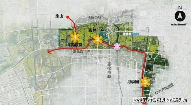 北望佘山,与佘山国家森林公园及别墅区相隔的,则是在建的松江新城绿环。这里正在建设内贯通道、系列驿站,及山麓教堂、彩林门户等“大师园”。