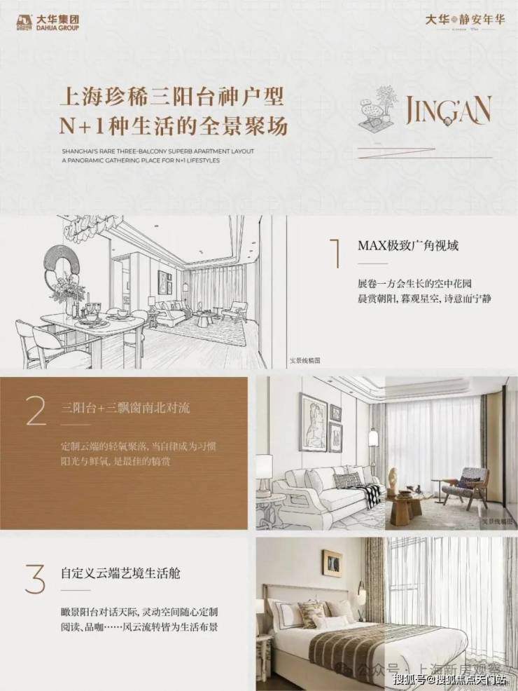 最新消息!静安首个“三阳台”「大华•静安年华」少量建面约108-123㎡3-4房高层,均价13万/㎡!总价1300万起!以及静安睽违已久的叠墅!样板间已开放;匠造悬浮高层+空中会所+三阳台户型,售楼处线上预约中!