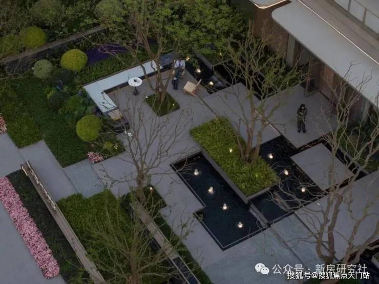 二开展示区全覆盖式营造度假花园场景,打造水岸归家轴,延续现代轻奢度假的理念,打造多维立体的景观空间。以水岸森居 ·享都会花园度假式社区理念打造水岸归家轴,空间由豪门隐贵、仪式水轴、森氧会客、度假水院、花园式归家串联组成。