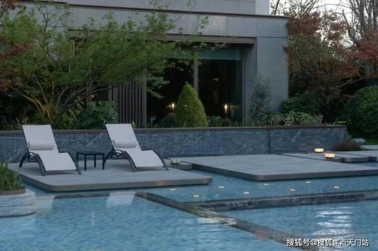 与森氧会客厅相接的是一处精心打造的度假戏水池,它不仅是清凉嬉戏的天堂,更是悠然自得的休闲圣地。下沉式的卡座巧妙地被清澈碧波轻轻环绕,为访客提供了一方私密而舒适的休憩空间。同时配备高端躺椅、阳伞增加度假氛围。池畔一侧,一抹别致的壁炉装饰更是点睛之笔,它不仅是视觉上的焦点,更象征着温暖与团聚。