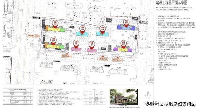 规划3栋总高17-29层住宅, 商业部分有2栋总高30F的酒店、23F的综合楼、以及2栋3F的商业;住宅和商业部分通过公共通道分隔;住宅部分人车分流,无地面车位。车行入口在西侧祁健路上。