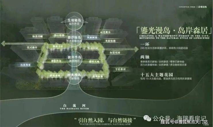 一环:24小时林荫漫步环,串联各大组团花园.两轴:约160m森系归家中轴,移步易景,营造尊崇归家礼序。活力共享趣味轴,多元交融的全龄森活场,境藏丰盛时光。