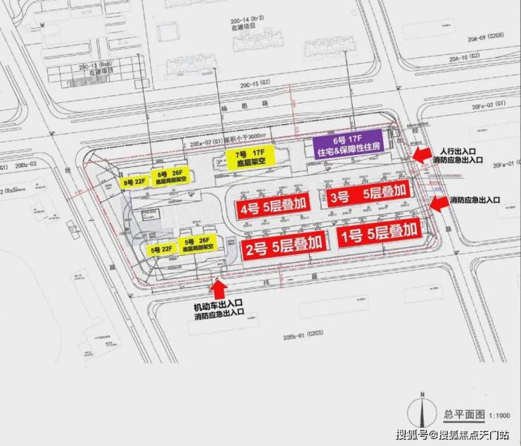 从规划方案来看,「翡雲悦府」二期楼栋的分布总体呈南低北高,东低西高的格局。东南侧分布4栋叠墅,西侧排布2栋22-26层的大高层,北侧排布2栋17层的高层,地块内保障房位于东北角。