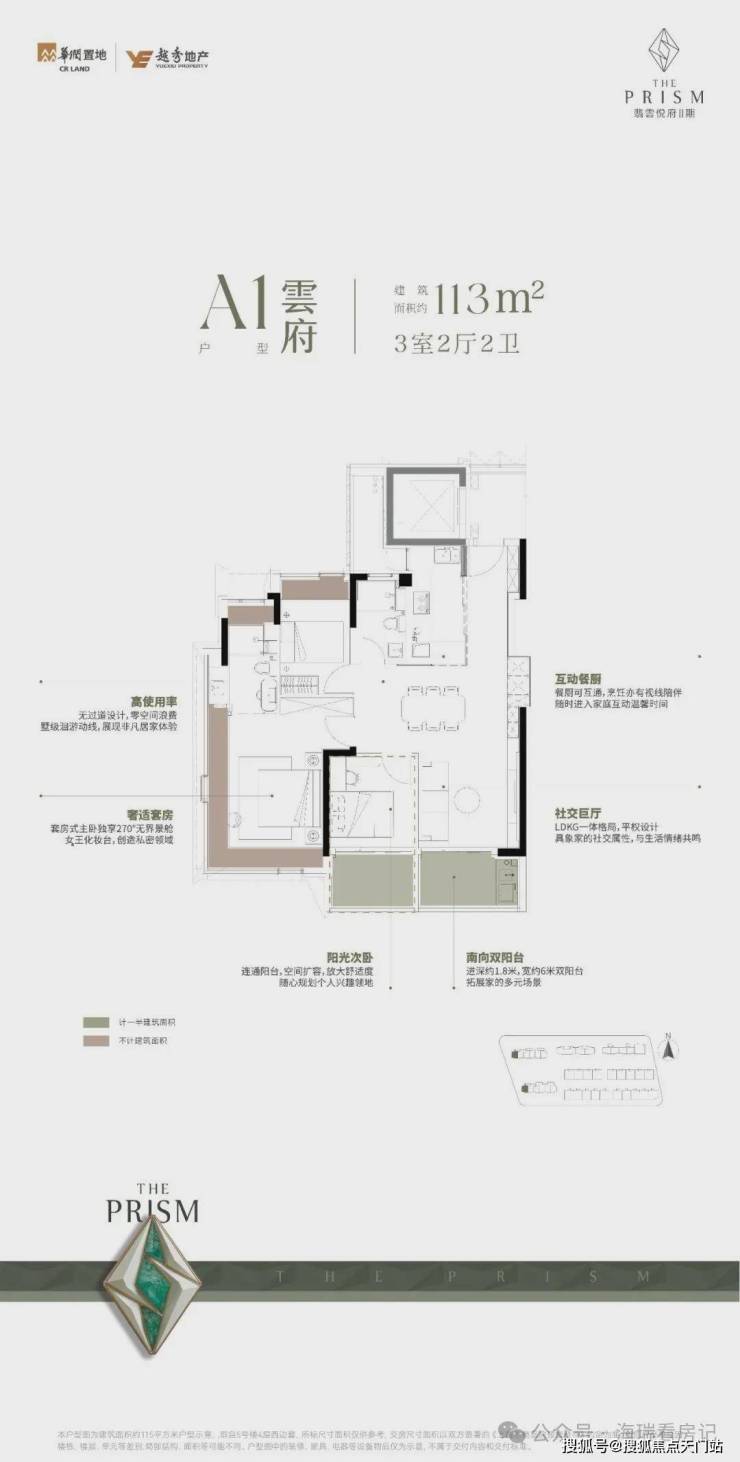 二期113㎡三室两厅两卫户型图,一共三种,每一种都透着华润对刚需的小心思。