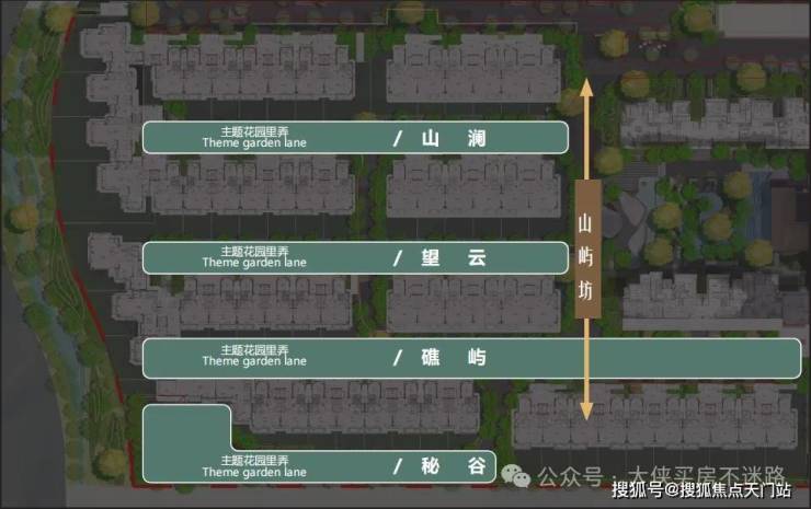 三进四大主题墅级归家场景。以山澜、望云、礁屿、秘谷四大主题景观统一打造雅奢度假风格,让业主尊享星级归家体验。