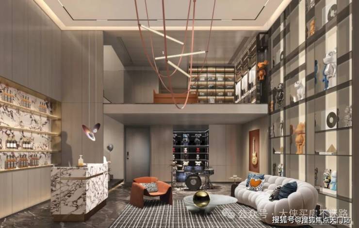 另外还有整个板块都从未见过的颠覆性实景示范区,建面约1600㎡度假酒店中岛+建面约600㎡架空层空间,看过很难不爱