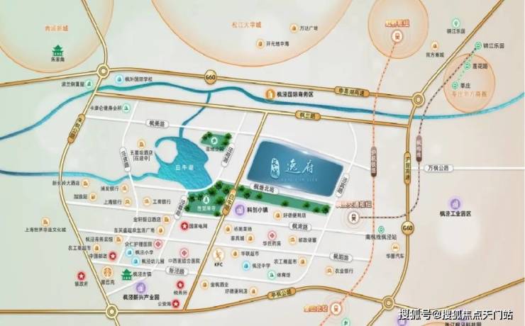 商业方面,项目南面约500米处有枫湾路菜市场及盒马超市;南面约800米处有肯德基、联华超市、农⼯商超市等配套。项目旁边在建的五星级劲霸枫泾酒店,这将是金山第一个五星级酒店。