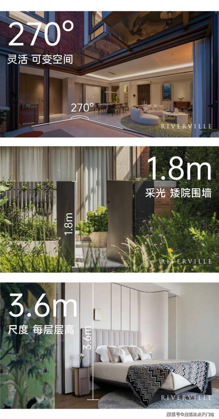 「开阔尺度」:约3.6米层高、超大窗墙比等花园里弄的尺度突破,尽显居者风度。