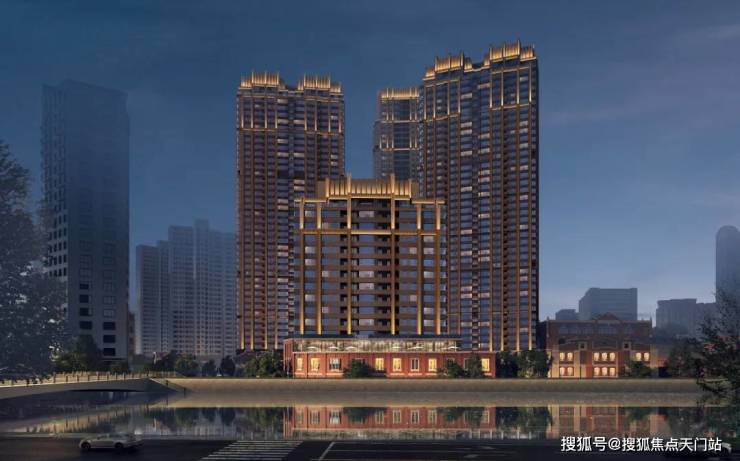 观家新房注意到,在外立面上,项目与外滩万国建筑博览群的建筑风格一脉相承,为ARTDECO风格,三段式立面,塑造出有立体感的韵律天际线。材质方面不计成本采用古铜色、深灰色+铝板、镜面铝板的完美搭配,再镶嵌竖向线条和立面层次,威仪肃穆。