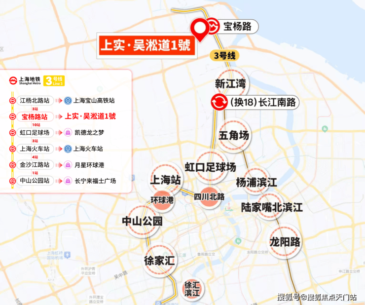 3号线通达虹口足球场、中山公园、徐家汇等多个热门商圈。