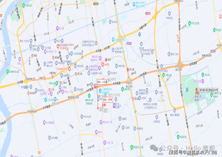 车行主干道:中环线、杨高路、沪南路、罗山路高架、外环线